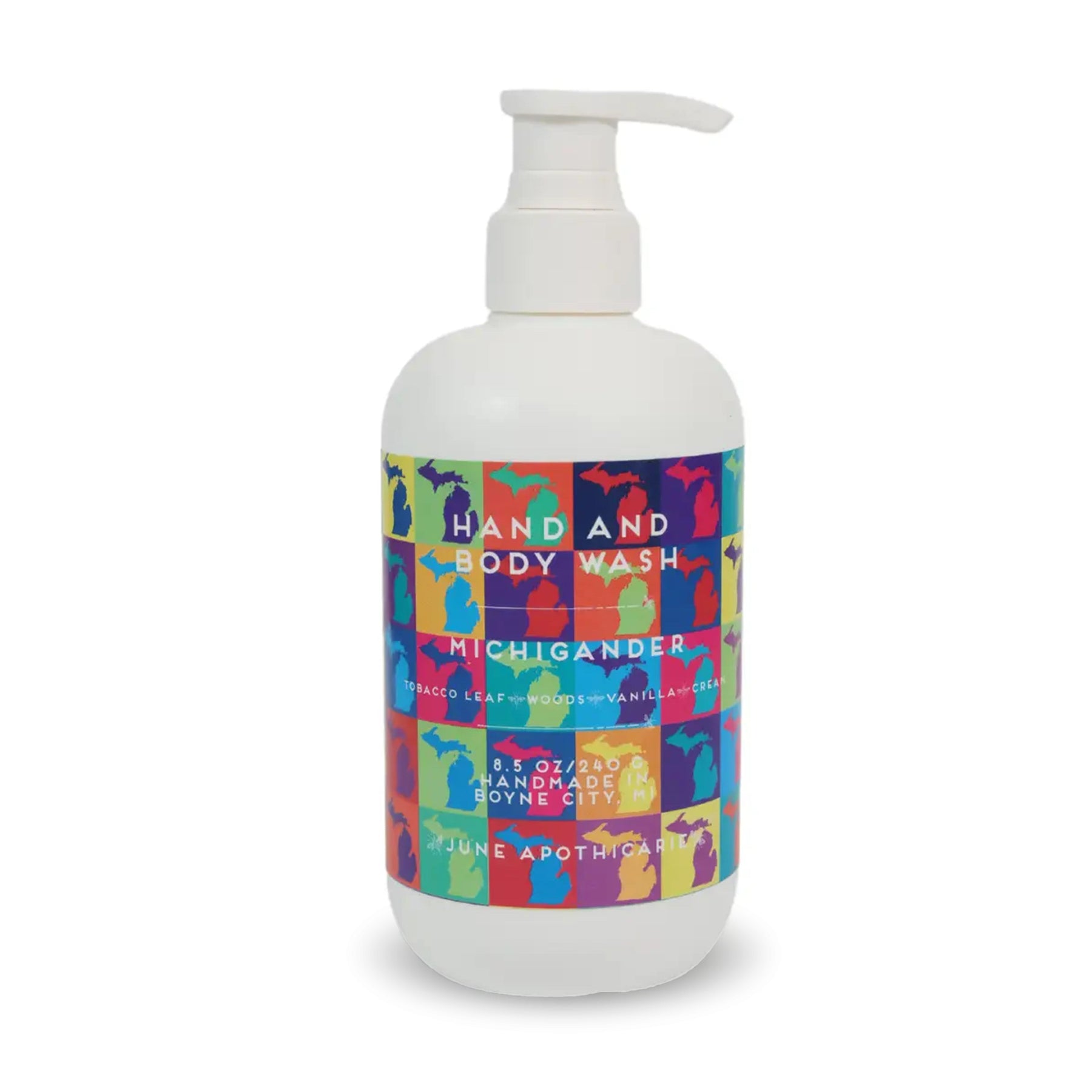 Packaged in a vibrant bottle wrapped in a colorful repeating pattern of the state of Michigan, this wash adds a cheerful pop to any sink or shower while celebrating Great Lakes pride.