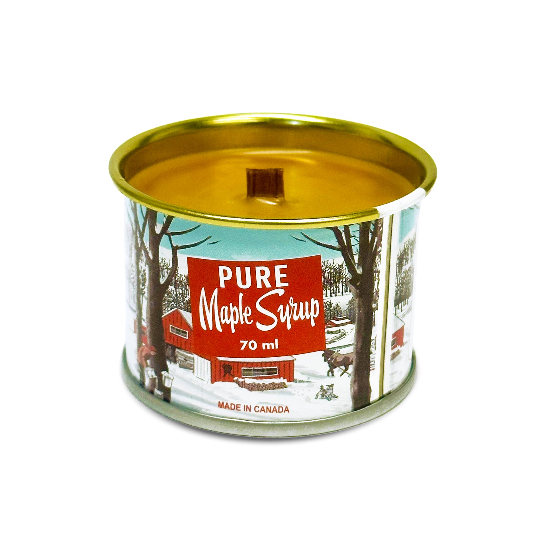 Bring the cozy charm of a sugar shack to any space with this Mini Maple Syrup Candle. Hand-poured into a miniature version of the iconic maple syrup tin, it fills the room with the rich, nostalgic aroma of caramelized maple sugar and buttery vanilla. A little candle that delivers big vibes wherever it goes.