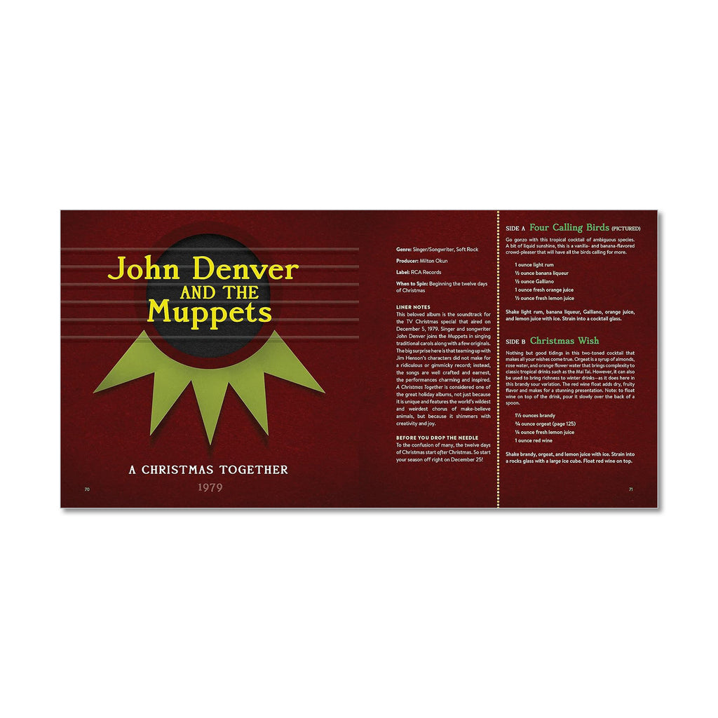 Each album entry includes liner notes describing the music and history, along with cocktail recipes designed to harmonize with the songs. Select holiday food recipes further enhance the experience, making it perfect for intimate gatherings or festive celebrations.