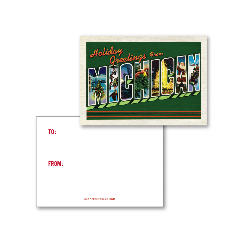 Whether you're sharing state pride or spreading festive cheer, this colorful card is perfect for anyone who loves vintage postcards, Pure Michigan holidays, or winter memories from the Great Lakes State.