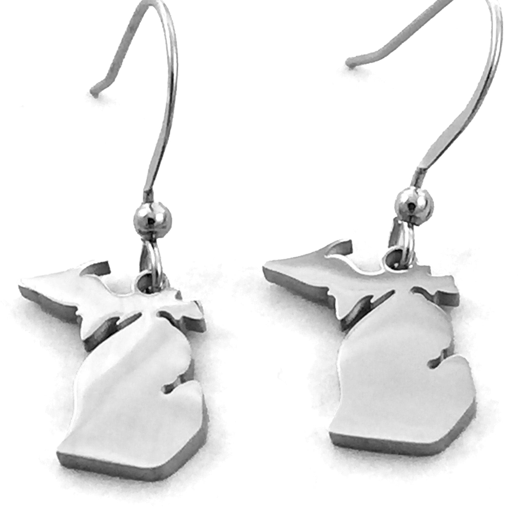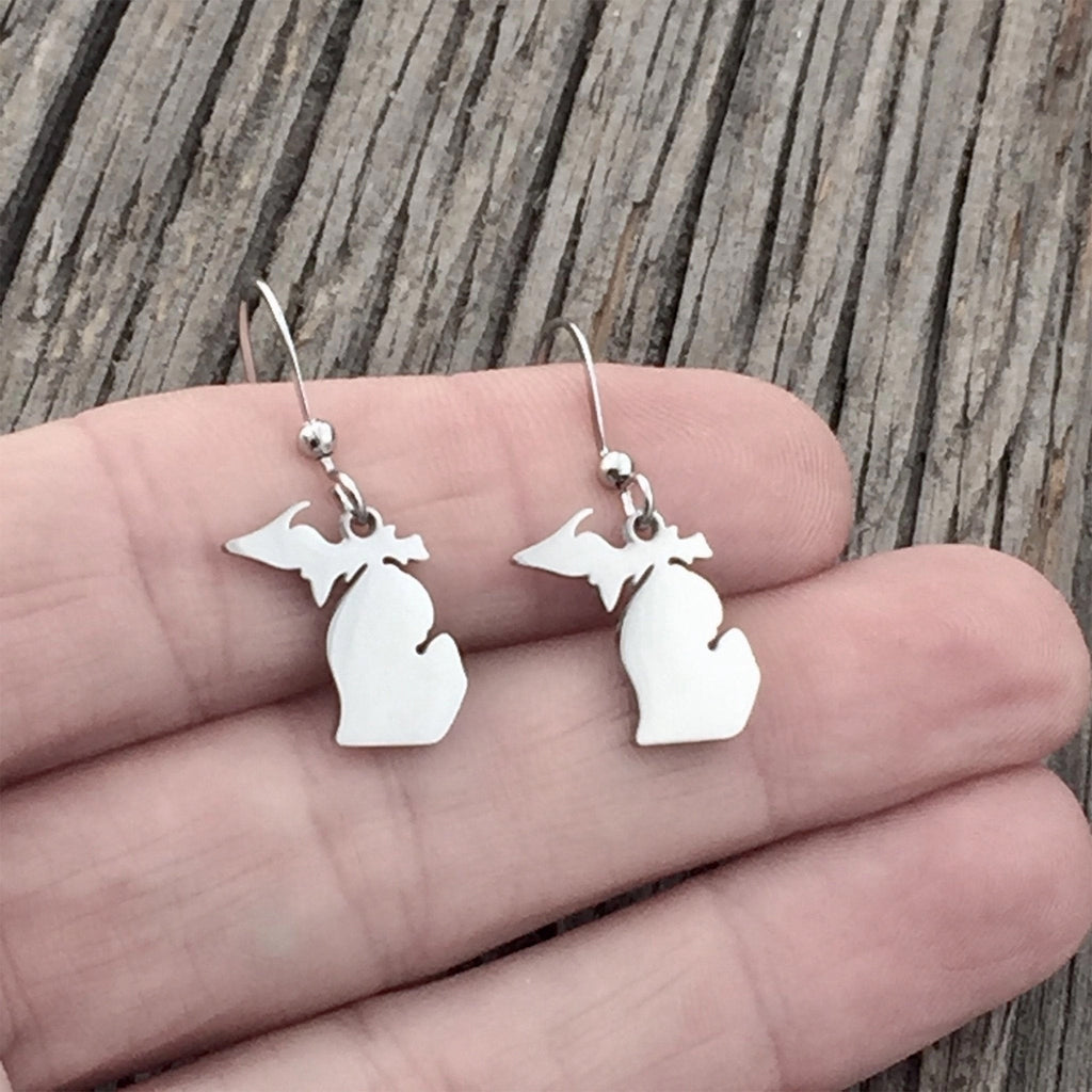 These earrings celebrate Michigan’s unique shape, including both the Upper and Lower Peninsulas, making them a meaningful accessory for locals, travelers, and anyone inspired by the state’s natural beauty and history.