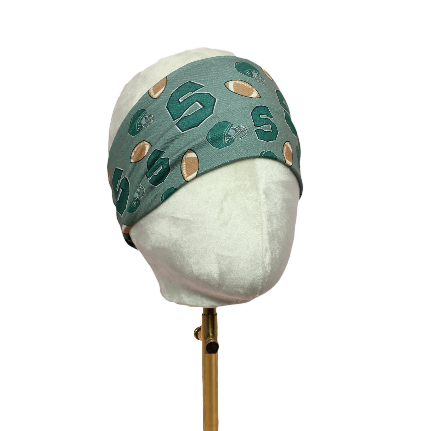 Game day just got a little bolder. This headband features a soft, light green background sprinkled with dark green “S” logos and tiny footballs, letting you show Spartan pride in a fun, stylish way.