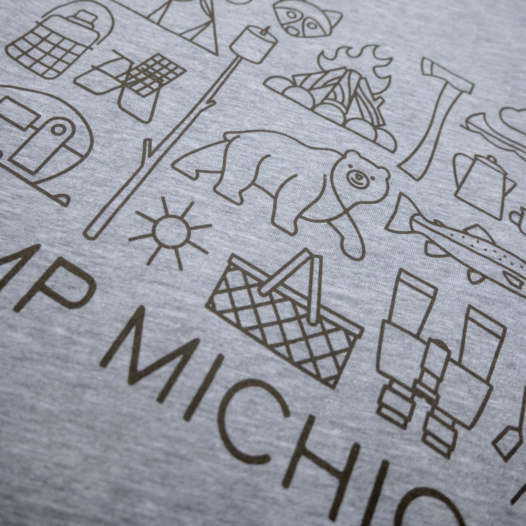 No matter what you love most about Michigan’s great outdoors, one thing is certain: every day is a good day at what we like to call Camp Michigan. This design celebrates those favorite activities and wildlife with a touch of mid-century modern style and a big dose of Michigander pride.