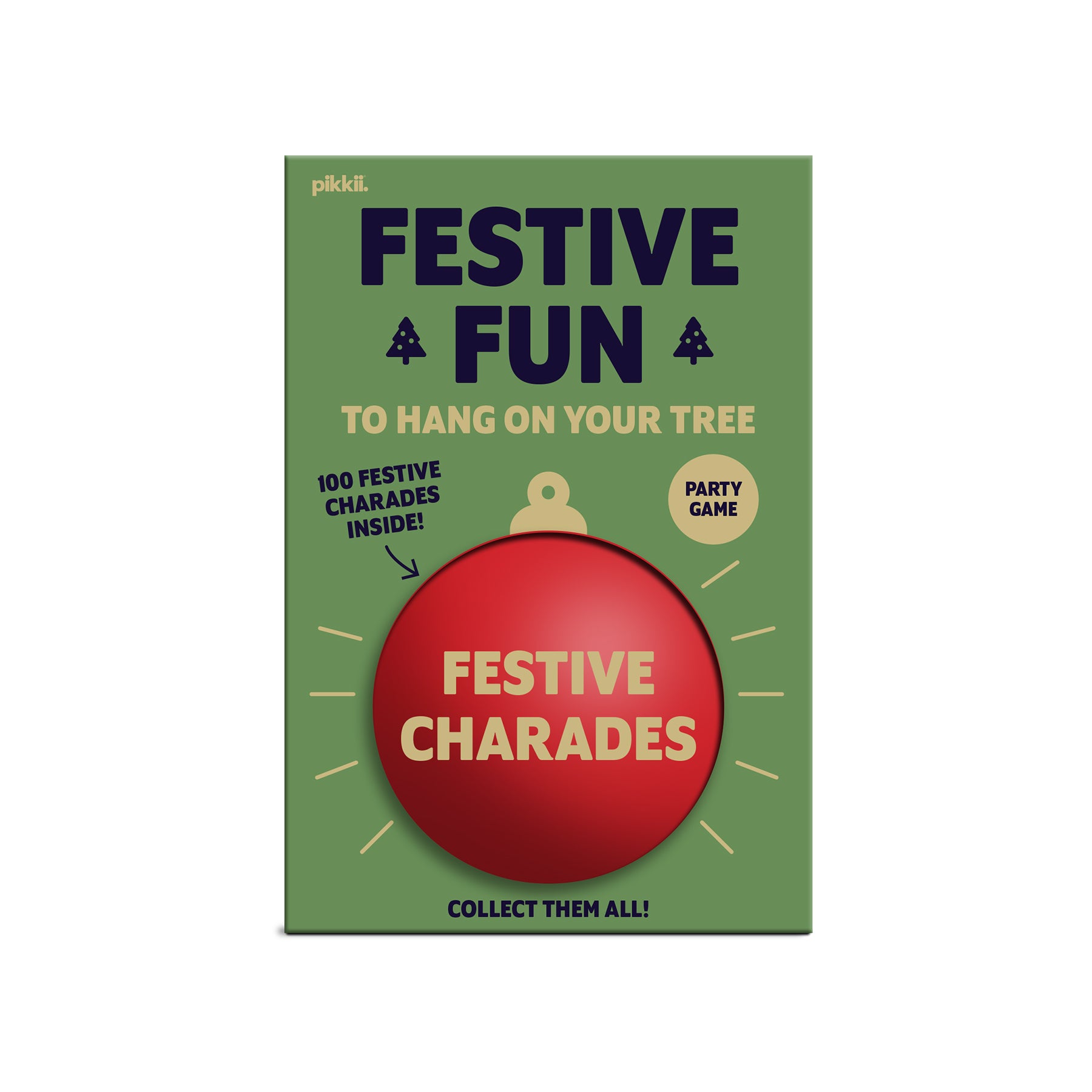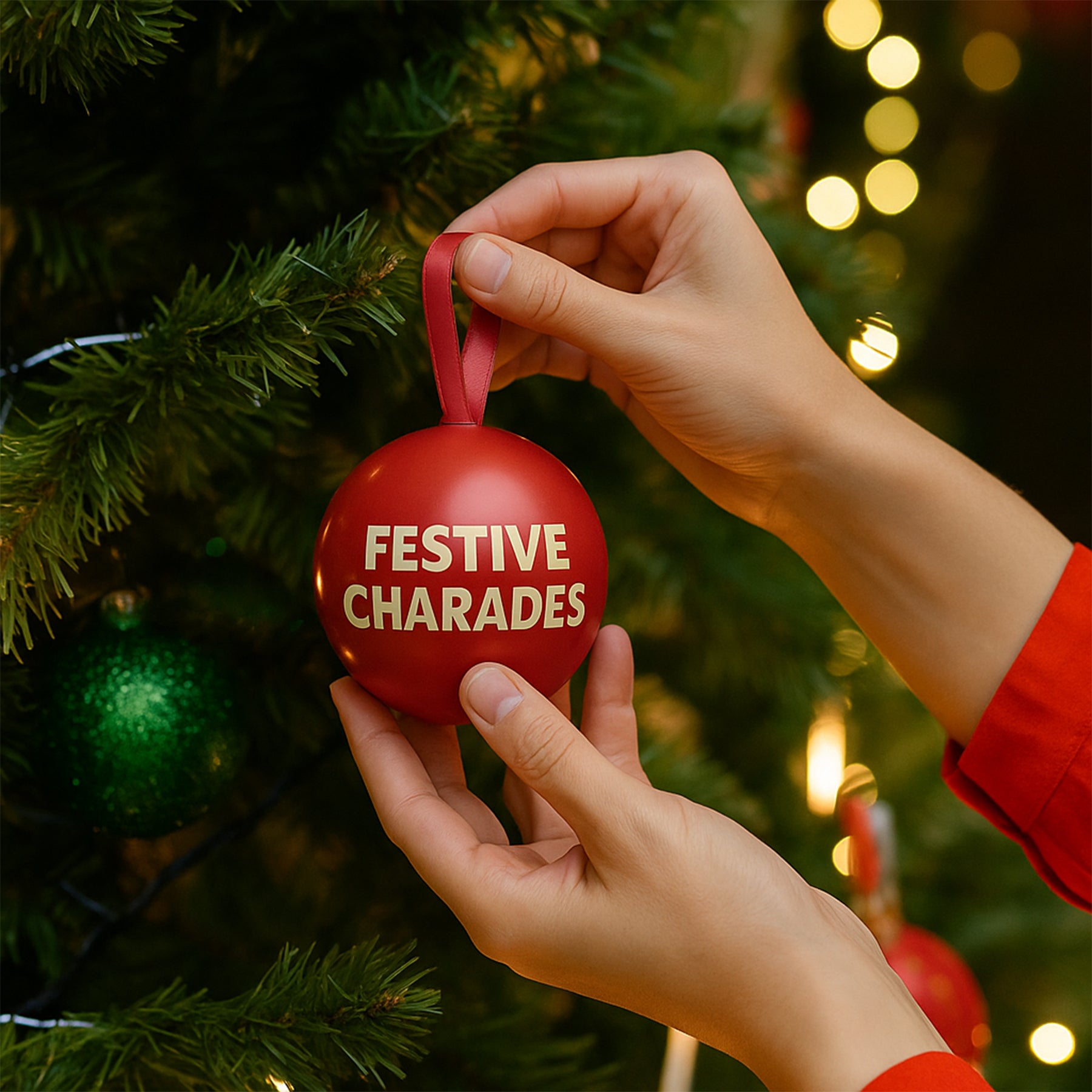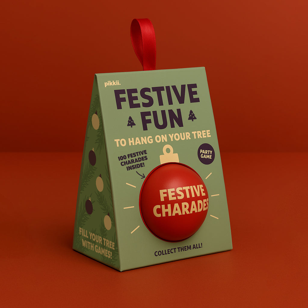 Add a playful twist to your holiday décor with this charming ornament that doubles as a party game! Inside, you'll find 100 festive charades prompts—perfect for family gatherings, office parties, or cozy nights in. No setup required—just pull out a prompt and start acting! When the fun winds down, pack them back into the ornament and hang it on your tree, ready for next time.