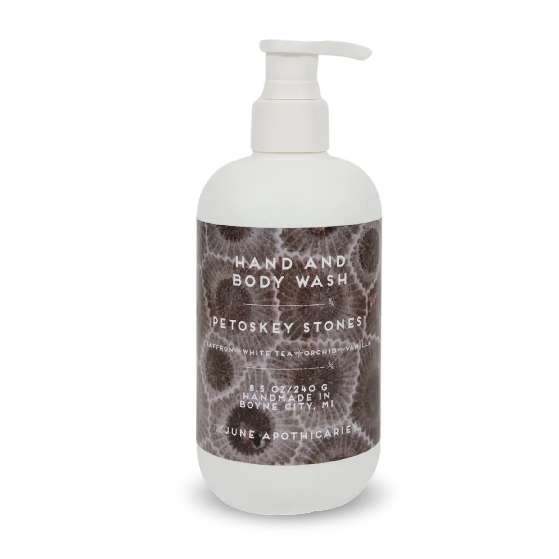 This gentle, sulfate-free hand and body wash is inspired by Michigan’s beloved state stone. The subtle, fresh scent evokes the feeling of standing on a rocky Lake Michigan beach with the breeze at your back. Rich lather and a milky, velvety consistency help replenish skin’s natural moisture barrier, leaving it soft and hydrated after every wash.