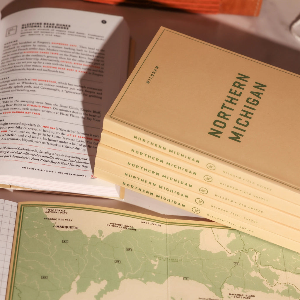 Inside the Wildsam Northern Michigan travel guide, you'll find sights and stories of Michigan’s finest cultural and natural attractions. Through illustrated maps and specially curated lists, you’ll learn more about the best of the Northern Mitten, from farm stands to Sleeping Bear Dunes.