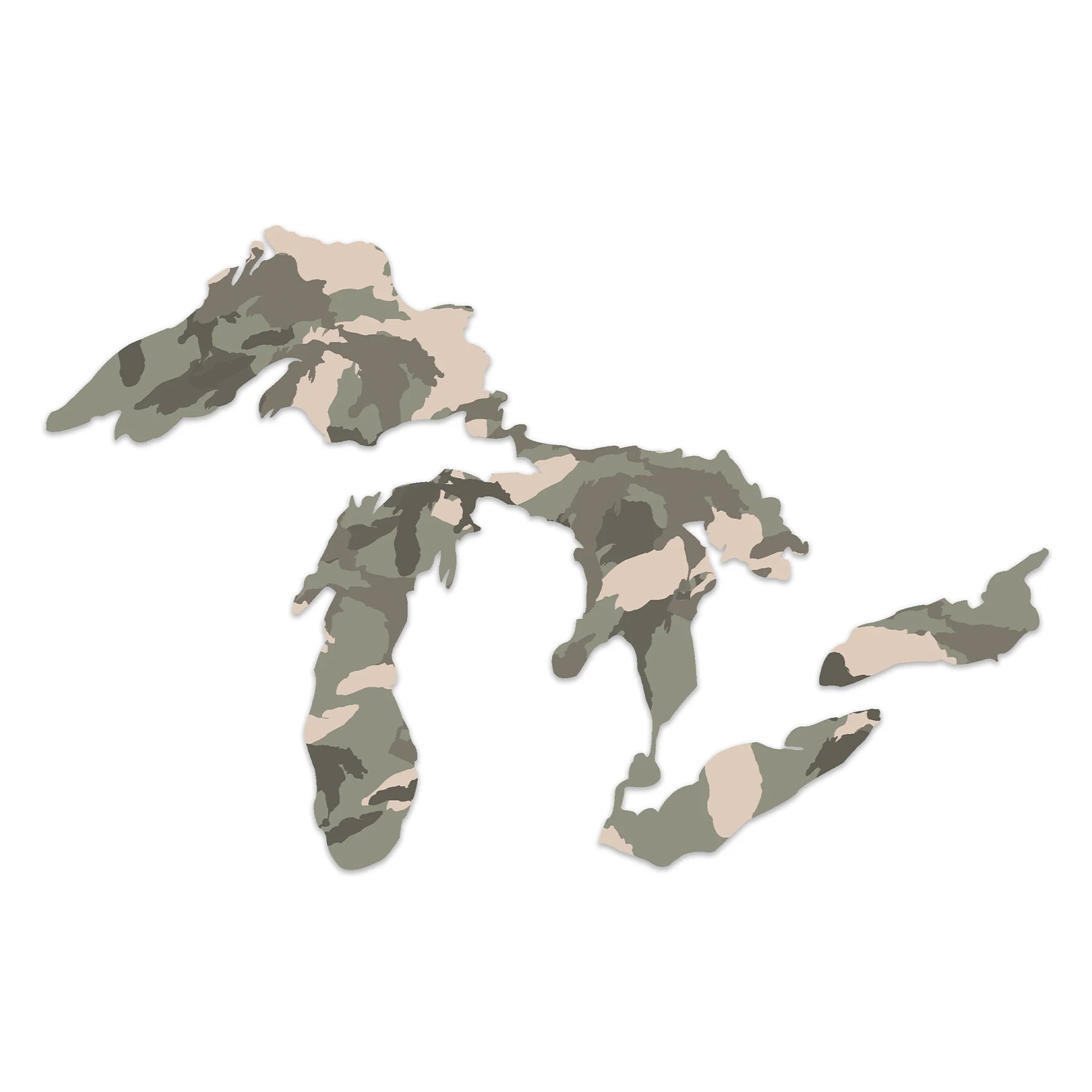 Celebrate your love for the lakes with the Great Lakes Camo Decal. This design transforms the silhouettes of all five Great Lakes into a creative camouflage pattern, layering colors and shapes in a playful yet stylish way. Printed on durable vinyl with a protective UV-resistant laminate, it’s perfect for cars, laptops, water bottles, or anywhere to show lakeside pride.