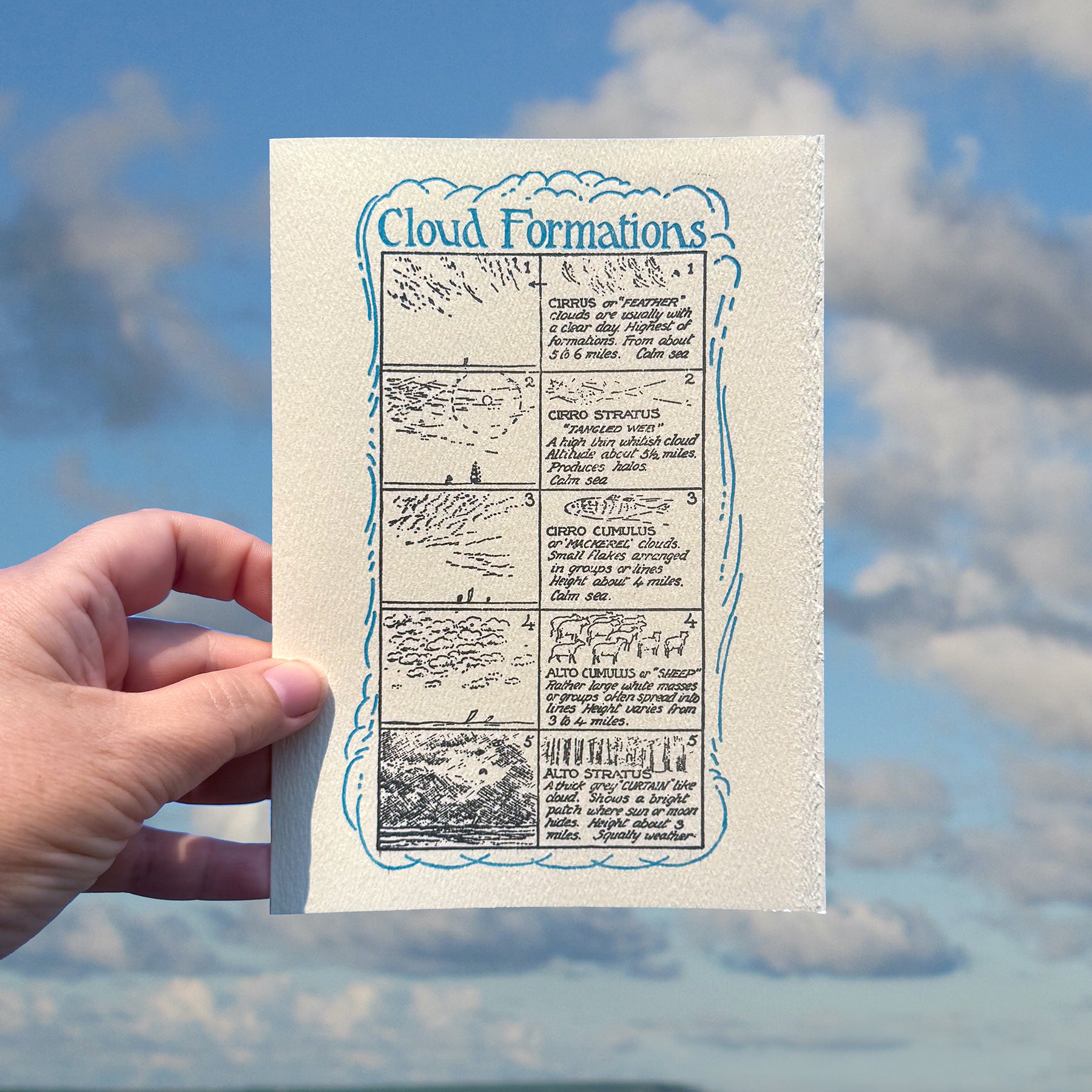 Reach for the clouds with this lovely letterpress card that shows different types of clouds in the sky. With clear, detailed drawings, it’s a simple, enjoyable way to learn a bit about nature.